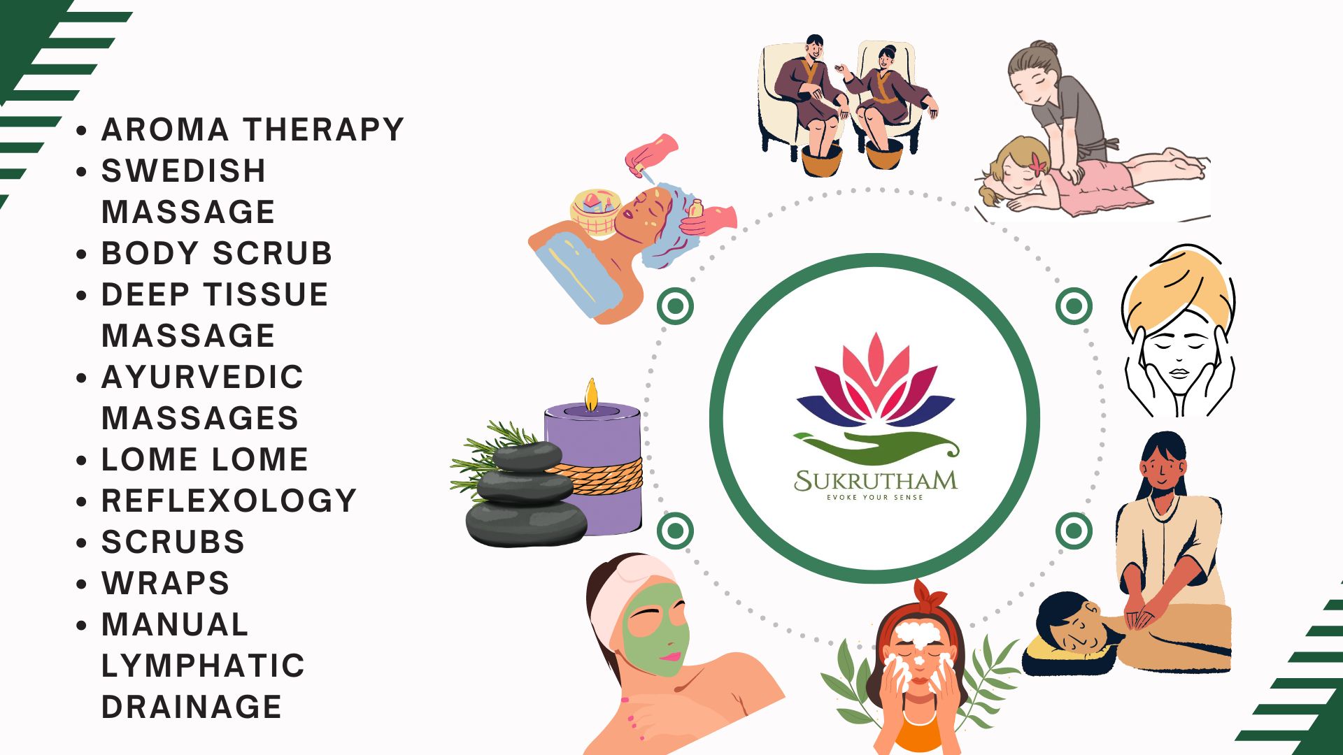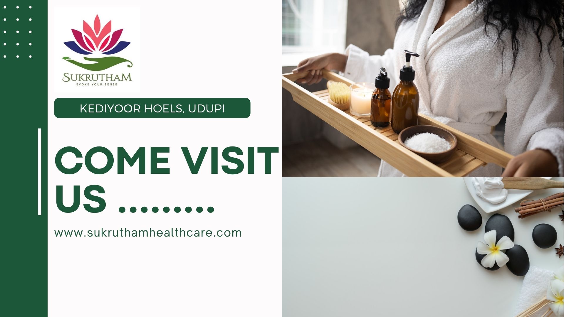SUKRUTHAM SPA PROVIDES WESTERN AND AYURVEDIC MASSAGES UNDER PLEASANT AROMA, CALM AMBIENCE, RELAXING OILS AND PAMPERING MUSIC. WHEN YOU ARE TIRED AND NEED SOME RELAXATION, WHEN YOU ARE STRESSED AND NEED SOME REFRESHMENT ALL YOU NEED TO LOOK FOR IS SUKRUTHAM NEAR ME. WE ARE VERY HAPPY AND EXCITED TO ANNOUNCE OUR NEW BRANCH IN UDUPI, THE SPIRITUAL AND CULTURAL CITY OF KARNATAKA.